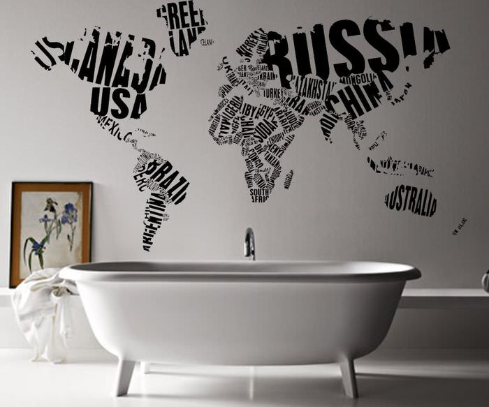 Карта мира из надписей подойдет для гостиной в стиле лофт