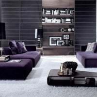 Современный дизайн гостиной с фиолетовым диваном