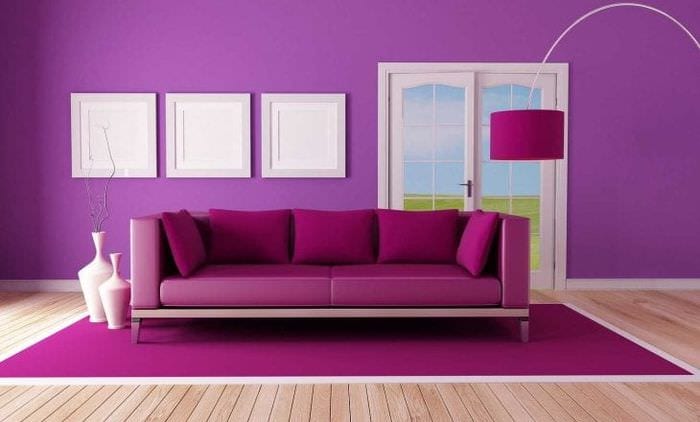 Яркий фиолетовый диван в интерьере