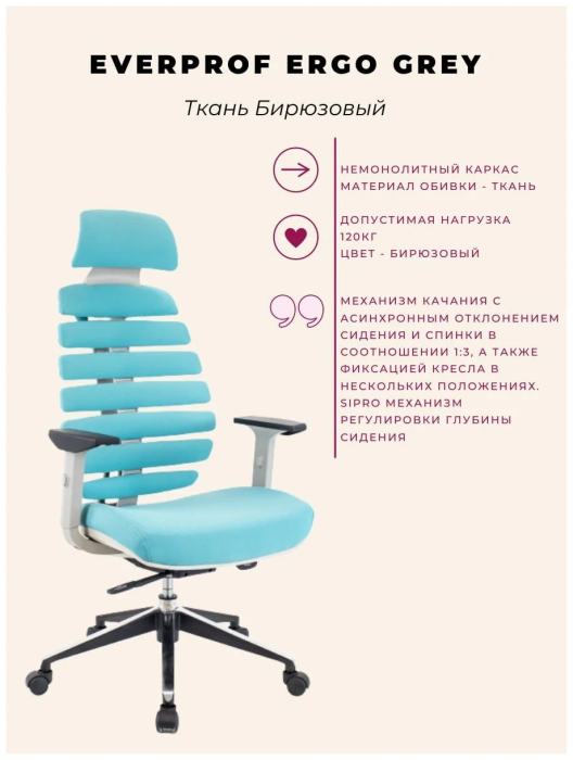 Everprof Ergo Grey. Кресло отличается оригинальным дизайном. Спинка состоит из отдельных блоков, что позволяет ей максимально адаптироваться к индивидуальным особенностям строения садящегося человека.