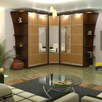 Основное отличие данной модели шкафа-купе в его форме, которая позволяет расположить эту мебель в небольшой комнате. Такие изделия сохраняют больше площади, не теряя функциональности. Большая разновидность форм позволяет вписать его в любой интерьер помещения. В просторных помещениях отлично дополняет интерьер, позволяя заполнить угол.