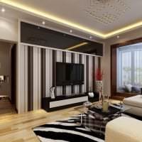 Допустимым является использование моделей с орнаментами, рисунками или в горошек и полоску. Бежевые модели в черную полоску зрительно увеличат высоту комнаты в классическом интерьере. Полоску используют многие дизайнеры в коллекции 2021. Для небольших помещений такой вариант увеличивает размеры комнаты.