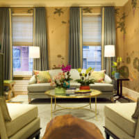 - Чувство стиля не менее важно. Выбор палитры должен быть продиктован стилистикой помещения, поскольку не каждый золотистый интерьер реально восхищает утонченной изысканностью. Не стоит злоупотреблять поверхностями большой площади – золотыми обоями на стенах, шторами и обивкой диванов одновременно. Лучше ограничиться фурнитурой и аксессуарами, как было описано ранее.