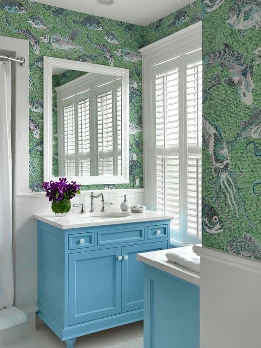 Здесь также отлично впишется мятный оттенок. Его советуют специалисты области дизайна, а также психологи. Мятный благоприятен для зрительного восприятия, не является агрессивным, оказывает благоприятное воздействие на психику человека. Поэтому не бойтесь его использовать часто, много.