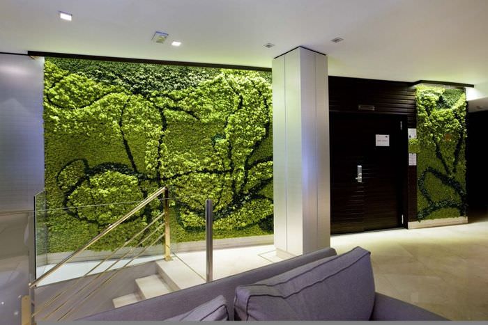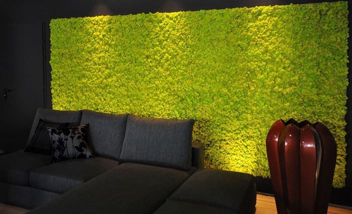 Живой мох в интерьере приобретает все большую популярность. Наличие в жилом помещении живого мха — явный признак экостиля. С помощью мха можно выгодно украсить интерьер и одновременно освежить его. Такой «зеленый помощник» заменяет лианы и вьюнки, им можно покрыть целые поверхности, в том числе вертикальные. Он по-настоящему украшает интерьер и станет истинной находкой для всех любителей вечнозеленого, кто заботится о своих глазах и нервах, позволяя им отдыхать при созерцании зелени.