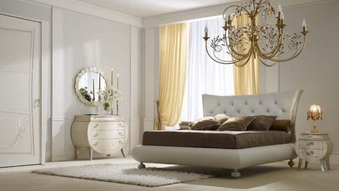 Светлая спальня в стиле арт деко