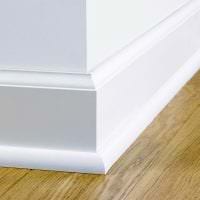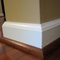 - Подбирайте материал, из которого изготовлен белый плинтус в зависимости от напольного покрытия.