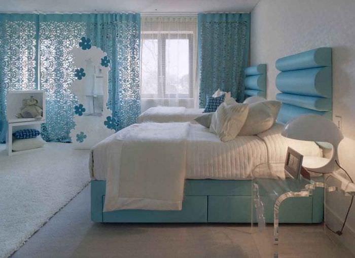 Интерьер спальни в голубых тонах