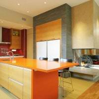 В малогабаритных кухнях предпочтительно применять светлые комбинации — ваниль, молочный, бежевый, светло-серый, мятный, нежно-розовый и пр. А вот в больших комнатах и тем более квартирах студиях можно использовать более яркие и контрастные варианты. Если кухонная зона совмещена с гостиной, она может контрастировать с ней, либо гармонировать. Контраст удобен, если нужно визуально разграничить кухонное пространство и гостиную.