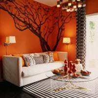 - Если в качестве основы выбраны светлые сочетания, ее обязательно нужно разбавить яркими деталями, чтобы освежить убранство. Это может быть мебель, например, морковный диван на фоне бежевых стен, или аксессуары — шторы, вазы, фото и картины, диванные подушки, покрывала и пр.