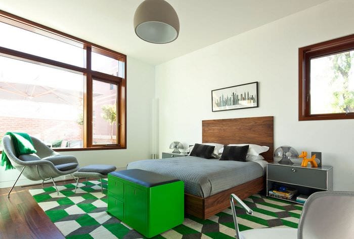 На спальной зоне обычно не акцентируют внимание, и она играет сугубо функциональную роль. Обычно это просто кровать, которая может располагаться в любой части комнаты: в центре, у стены и даже над рабочим столом. Особый интерес представляют компактные кровати, которые выдвигаются из подиума, раскладываются из шкафа или располагаются на втором ярусе.
