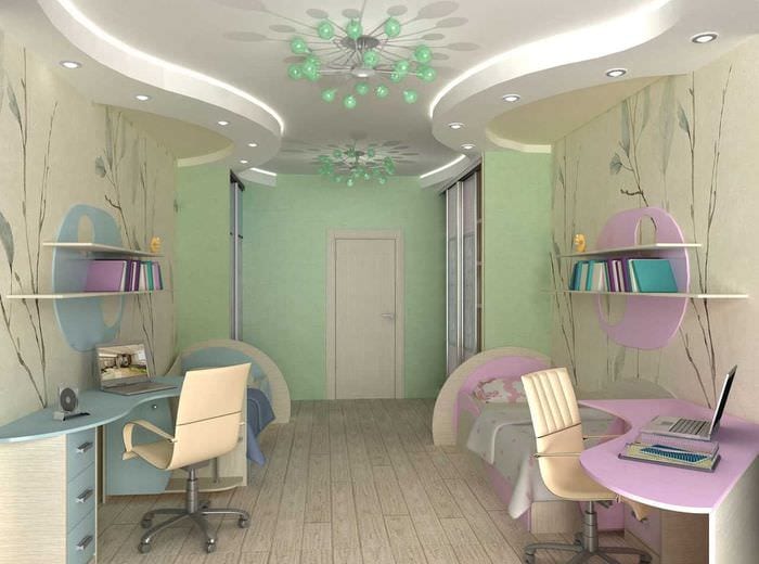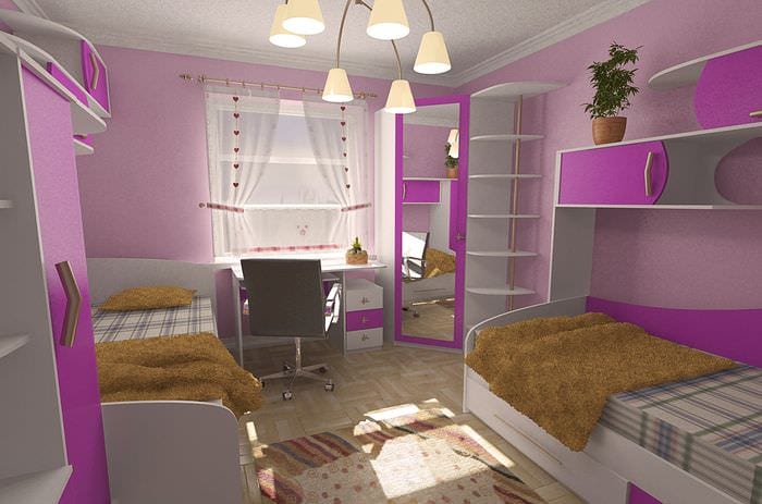 Внимание! Некоторые дети заботятся о своем статусе среди сверстников, и для них важен дизайн спальни для двух девочек, куда они могут приглашать своих одноклассников или подружек. В ненастье им будет интересно вместе поиграть в хорошо обустроенной детской комнате в компьютерную игру, решать головоломки, демонстрировать наряды или собственноручный handmade.