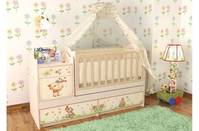 | Кроватка | Кровать-трансформер из натурального дерева. Безопасный материал изготовления мебели не нанесет вреда здоровью ребенка, а трансформирующаяся модель легко превратится в обычную детскую кроватку. | Громоздкая кровать для малыша, которая через несколько лет станет ненужной.