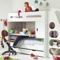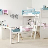 В комнате, где проживают двое детей, мебели будет больше: две кровати, два рабочих стола, вместительный шкаф. Чтобы не загромождать пространство, мебель лучше выбирать многофункциональную.