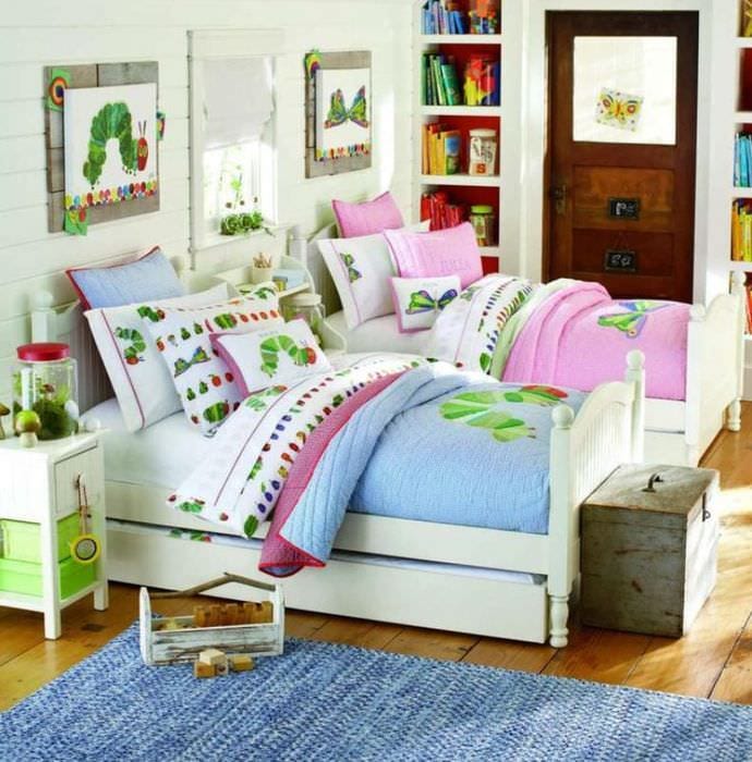 Оформлению спальных мест в интерьере детской для разнополых детей нужно уделить особое внимание.