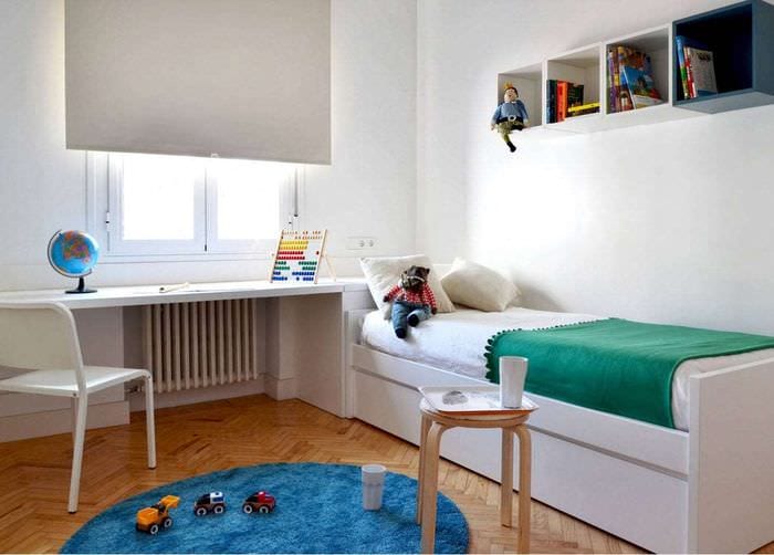 Если площадь комнаты маленькая, то лучше выбрать раскладное кресло. Хорошо установить спальное место выдвижного типа или оснащенное ящиками. В нем разместятся вещи, предметы. В таком случае шкаф можно не устанавливать. Это сэкономит площадь и появится больше свободного места, что понравится ребенку.
