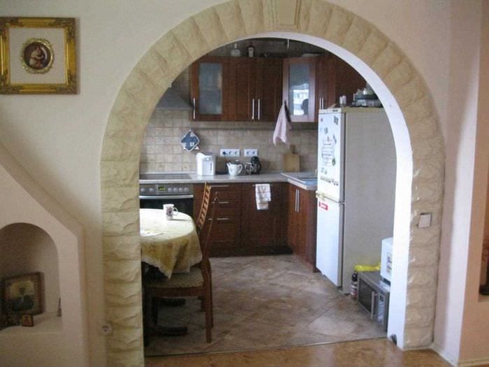 Длинная кирпичная арка будет выглядеть необычно в интерьере кухни
