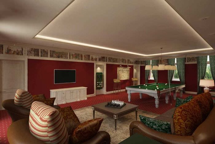 Продуманный интерьер бильярдной комнаты – признак утонченного вкуса