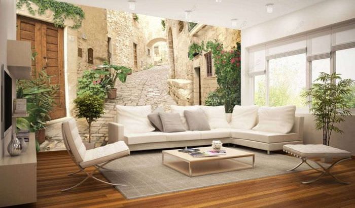 - Город – улица с домами наполнит комнату энергией, можно выбрать небольшой городок с маленькими домиками или крупный мегаполис, например, широкой популярностью пользуются виды Эйфелевой башни в Париже.