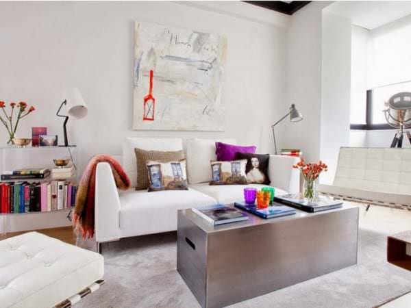 - если вас привлекает минимализм, вы не желаете загромождать дизайн гостиной мебелью, хотите выполнить интерьер в классическом стиле, тогда придется отказаться от громоздких предметов, модульные элементы отличаются скромностью и простотой. Вам подойдет скромный декор на стене в виде картины, несколько декоративных подушек на диване и неприметный ковер на полу, как на фото. Количество вещей в интерьере зависит от квадратных метров гостиной: чем она меньше, тем минимальнее набор мебели и аксессуаров;