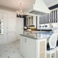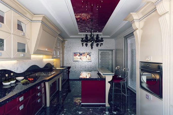 Дизайн кухни в стиле арт-деко с натяжным потолком.