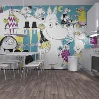 При размещении обоев в зоне приготовления пищи не стоит использовать материалы, чей верхний слой выполнен из песка, шелка или льна. Фотообои-фрески вряд ли выдержат нагрузку в качестве воды и высокой температуры. Но если поставить поверх них стекло, изделия прослужат внушительный срок.