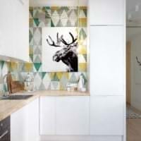 Часто современные дизайнеры предлагают фотообои на кухню с абстрактным рисунком. Представленный вариант сделает помещение оригинальным, но при длительном нахождении в нем вы будете сильно уставать. Поэтому, если на первом плане в доме стоит уют, от такой идеи стоит отказаться.