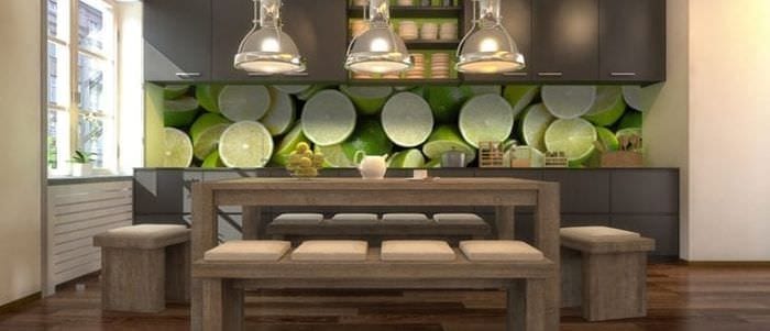 Модным стало оформлять при помощи фотообоев кухонный фартук