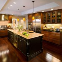 Кухня сочетает в себе элементы огня и воды
