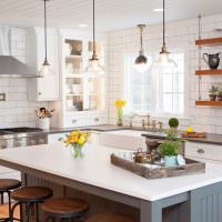 Для более кардинального решения, подумайте об установке столешниц в центре помещения. Размещение плиты в такой столешнице позволяет повару видеть всю комнату, включая дверной проем. Помимо преимуществ для фэн-шуй, такой прием очень практичен.