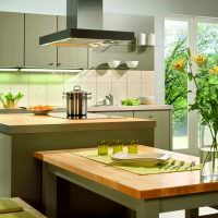 Зеленый цвет кухни по фен шуй подойдет в сочетании с желтым. Подобная цветовая комбинация должна быть сделана умело. Такая кухня будет прекрасно смотреться в игре теплых зеленых тонов и мебели из черного цвета.