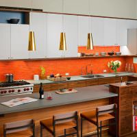 Теплые, стимулирующие оттенки обоев на кухне красного и оранжевого спектра усиливают аппетит. Найдите дизайн обоев, который подражает общему декору: колониальные ананасы, классические европейские лилии, попугаи в восточном стиле и пальмы. Узорная бумага с нежным абрикосовым или персиковым покрытием сделает небольшую кухню более просторной и элегантной.