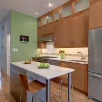 Свежий мятно-зеленый цвет на кухне с сочетанием кирпичной стены будет отличным вариантом фен-шуя кухни