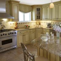 Красивый желто-зеленый цвет кухни очень успокаивающий, солидный и спокойный.