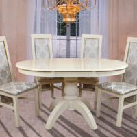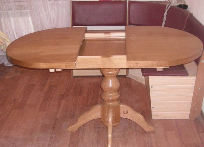 - раздвижной вариант, где вставка превращает круглый столик в овальный;
