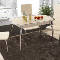 Кухонные столы со скругленными краями обычно не бывают широкими, в противовес круглым моделям. Параметры длины обычно варьируются, и можно подобрать такое изделие, которое дает возможность усаживать требуемое количество гостей или членов семьи.