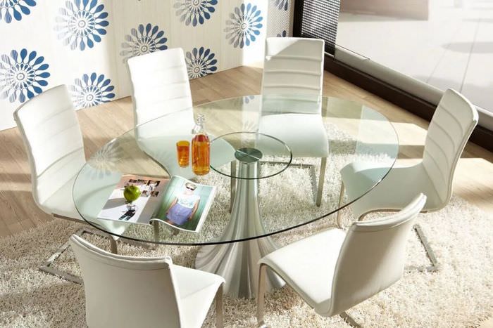 Овальная столешница из стекла намного безопаснее, чем прямоугольная.