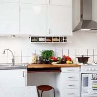 Для области питания, как правило, выбирается самая комфортная часть помещения. В мини-кухне это может быть широкий угол, где может поместиться вся семья. Проще всего мебель, а именно стол и лавочки или стулья сделать своими руками, так как размеры кухни не всегда позволяют покупать товары серийного производства. Под лавочками очень часто располагают выдвижные корзины для кухни, в которых можно расположить все предметы, не имеющие первую необходимость. На тематических порталах можно найти разные идеи с фото о том, как лучше оформить и сделать всё своими руками.