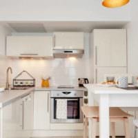 Проявив смелость, создатели интерьера небольшой кухни могут попробовать другие виды планировки.