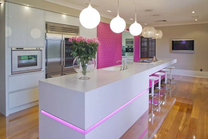 Какие элементы интерьера кухни выполнить в розовом цвете