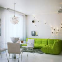 Подобно этому интерьер гостиной располагает малознакомых людей к конструктивным беседам, ищущим компромиссов и взаимопонимания. Оформление с оливковым диваном в интерьере для зоны переговоров нередко выбирают руководители больших японских корпораций.