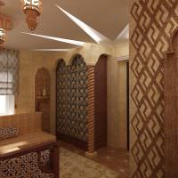 Коридор является связующим элементом между входной, жилой зонами. В частном доме это помещение обычно достаточно просторное, включает в себя лестницу на второй этаж. Хозяева могут делать дизайн холла самостоятельным, либо продолжить в нем стилистику других комнат. Удачное интерьерное решение станет залогом формирования положительного впечатления у гостей, впервые посетивших дом.