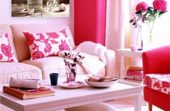 Интерьер комнаты в розовом цвете