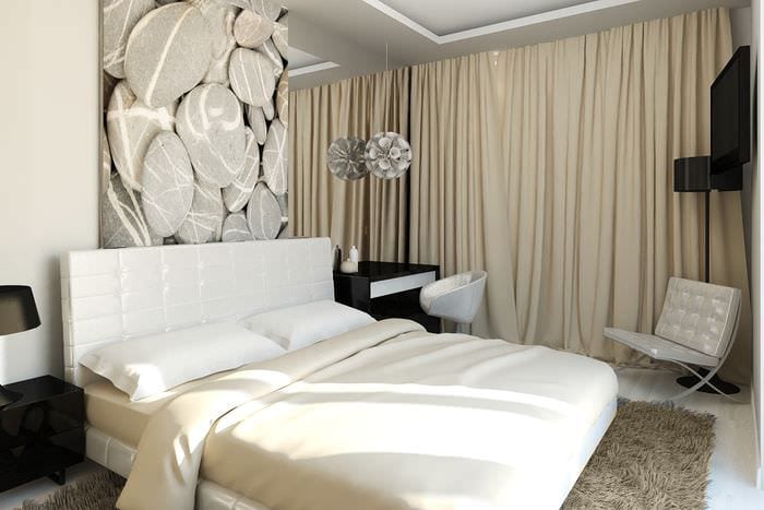- Мелкий рисунок визуально сделает спальню меньше, может провоцировать угнетающее настроение.