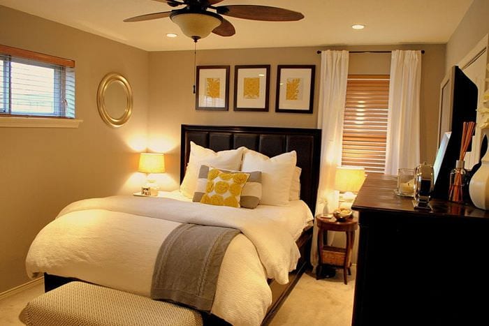 Если спальная комната небольших размеров самым удачным решением будет — симметричный дизайн.