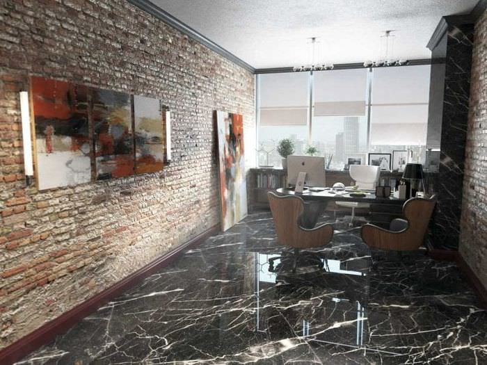 - Стены можно отделать любым понравившимся материалом либо использовать обои, деревянные или бамбуковые панели для декора, покрытие из текстиля. Обычная покраска стен здесь может быть так же уместна. Для больших помещений предпочтительно сочетание нескольких вариантов отделки, к примеру, окрашенной кладкой из кирпича и натуральным камнем.