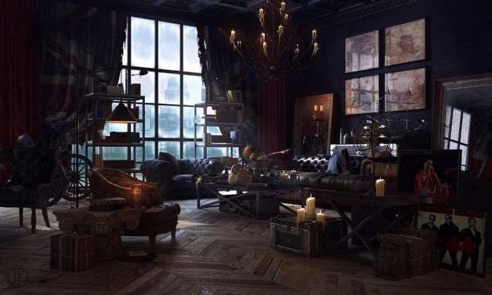 Идеальная комната в стиле стимпанк напоминает жилище ученого-изобретателя из прошлого века. Украсьте ее различными элементами паровых машин, поставьте мебель в викторианском стиле и интерьер будет практически готов.