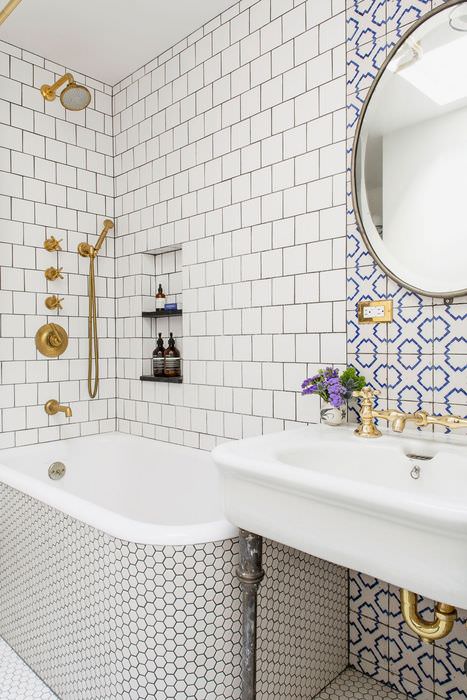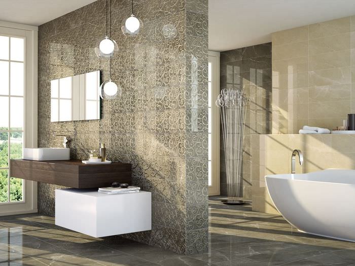 Не обязательно для создания дизайна ванной комнаты использовать только один вид плитки.