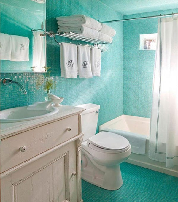 Оригинальная идея – обустроить ванную в голубых тонах, с морской тематикой.