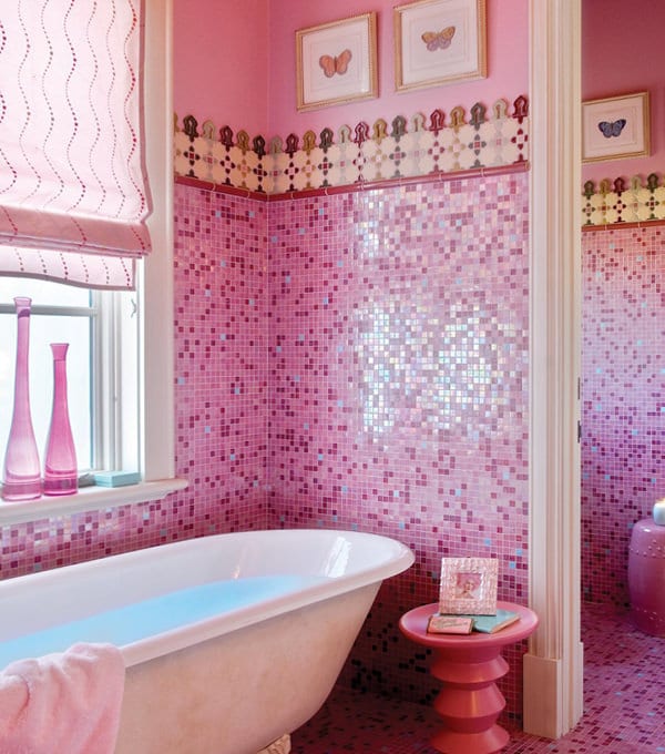 Благодаря тому, что у нее своеобразная структура, дизайнеры могут создавать совершенно неповторимые оформления облицовки ванных.